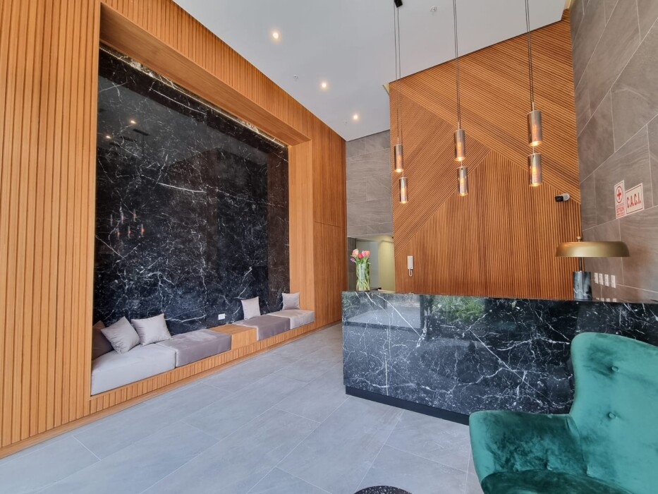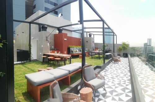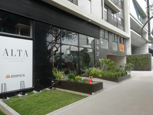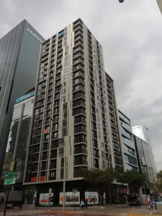 Edificio de vivienda de 4 sótanos de estacionamientos más 1 sótano de cisternas y cuarto de bombas, 23 pisos con 123 departamentos y una azotea con zonas de uso común, incluida una piscina.