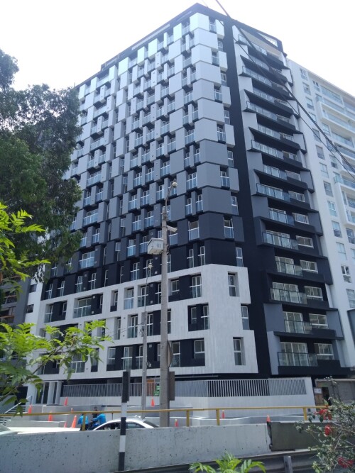 Edificio de vivienda de 17 pisos con departamentos de 1, 2 y 3 dormitorios. Áreas comunes y de servicio, equipado con sistemas: extracción y ventilación, ACI, A&D, sistemas de bombeo de agua y desagüe, ascensores, entre otros.